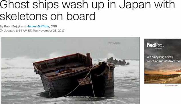 At least four boats that washed up on the shores of Japan this week have human skeletons on board, CNN reported. Authorities havent confirmed the boats origins, but suggested they might be from North Korea.