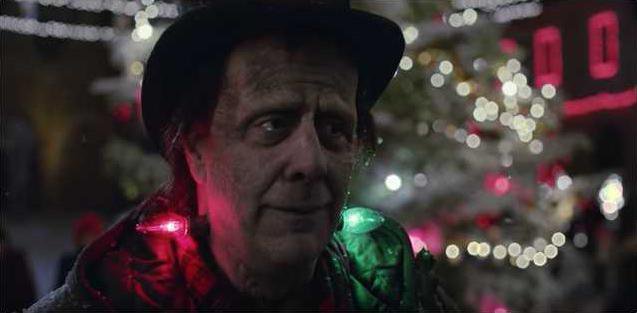 The ad shows the creature picking out red and green lightbulbs to replace his neck bolts and singing an off-tune solo of Perry Como's "Home For the Holidays."
