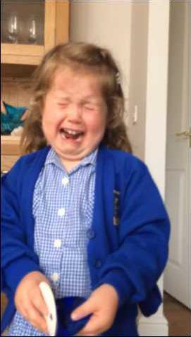 Crocodile tears, wails, and quivering words soon erupt from from her sweet, cherubic face.