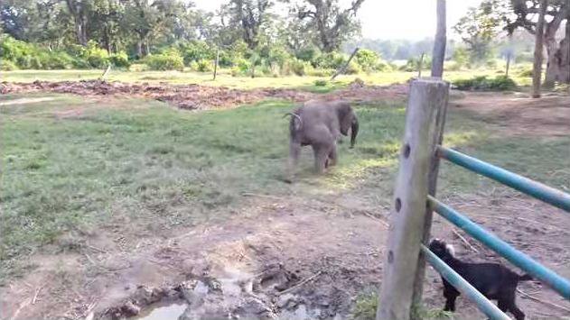 The baby elephant in this video probably thinks it falls into the former category as it boldly wanders several feet away from its mama in what appears to be a Nepalese reserve or animal sanctuary. All is going well until a baby goat enters the picture.