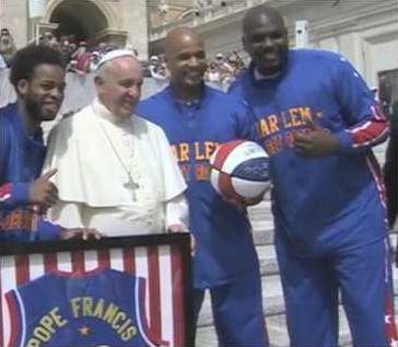 Well, heres one more video to help solidify Pope Francis as arguably the most popular pope of all time. Thats right, hes become an honorary Harlem Globetrotter.