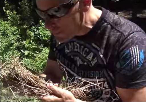 Thompson shows how filling a small plastic back with water and twisting it to create a sphere can be used as a magnifying glass. Using some crushed up dry bark as a fire starter, Thompson expertly gets the bag to concentrate heat enough to create an ember before transferring that to a nest of tinder made of dry grass and then finally onto a pit with kindling ready. The whole process is very interesting and the short video makes it seem very doable.