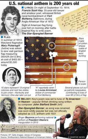 This year commemorates the 200th anniversary of the Star-Spangled Banner, written on the night of Sept. 13, 1814, by Francis Scott Key. The accompanying infographic shows some key facts about the development of the poem that has become a key part of American culture.