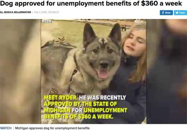 A dog in western Michigan mistakenly received unemployment benefits this week, at least in the eyes of the dog's owner.