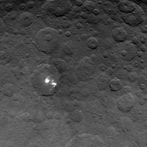 "The bright spots in this configuration make Ceres unique from anything we've seen before in the solar system, principal investigator Chris Russell said in a statement. The science team is working to understand their source. Reflection from ice is the leading candidate in my mind, but the team continues to consider alternate possibilities, such as salt.