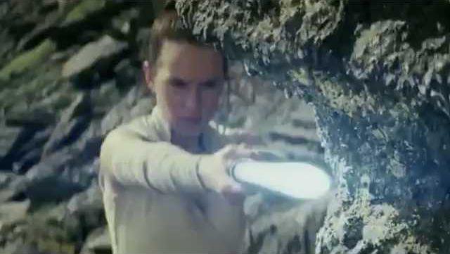 The trailer focuses on Rey (Daisy Ridley) and her training with Luke Skywalker (Mark Hamill). We briefly see images of Finn (John Boyega), Poe Dameron (Oscar Isaac) and General Leia Organa (Carrie Fisher).