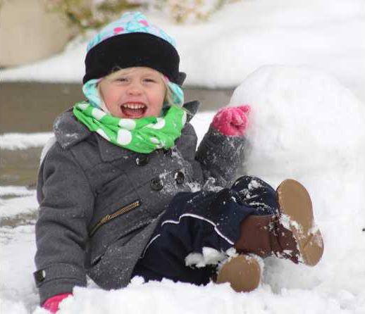 Three-year-old snowman killer Adi Conway sits atop another victim on Jan. 3