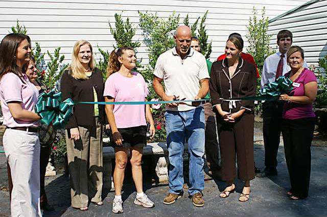 Aaron Herring cut the ribbon to Landscapers Depot as his staff and members of the Chamber of Commerce gathered in the new nursery on Goshen Road. The business moved from Waterford Court behind B&M Pools, across from the old Springfield Ford, in March.