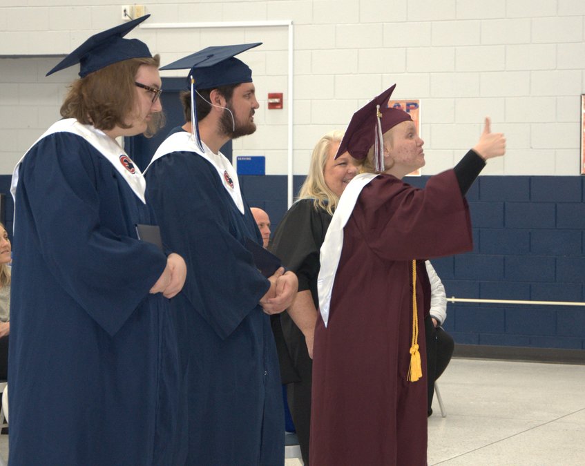Trinity Serota gives a “thumbs up” after receiving her diploma at the enCompass graduation ceremony Jan. 9. (Photos by Barbara Augsdorfer/Effingham Herald.)