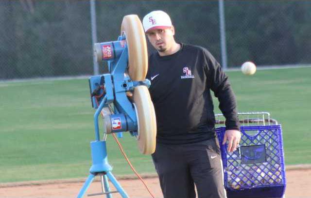 GUTYON -- South Effingham baseball coach John DeRing uses a pitching machine during Thursday's practice at the school. His Mustangs spent time working on bunt situations. In its first game of 2018, South Effingham will visit Effingham County on Feb. 13. The first pitch is set for 6 p.m.