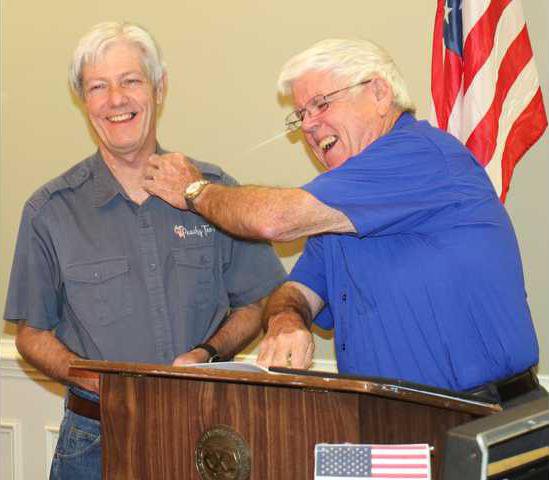 “From this day forward, you will have many challenging opportunities to serve your community through Exchange,” Blanton said before placing an Exchange Club pin on Polk’s collar. “It’s like what I tell a lot of people, you only get out of something what you put into it.”