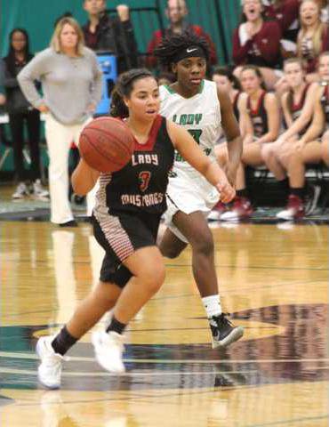 After battling Bluffton to a 19-19 halftime tie, the Lady Mustangs kept giving the ball away with errant passes. They finished with 30 turnovers in a 51-30 loss.