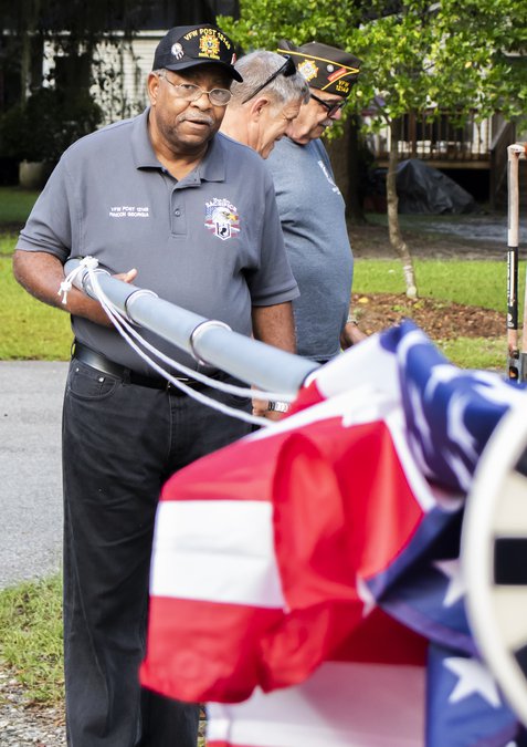 Early Saturday morning, a group from the post installed a flagpole at the United Way of the Coastal Empire-Effingham County office at 711 Zitterour Drive.