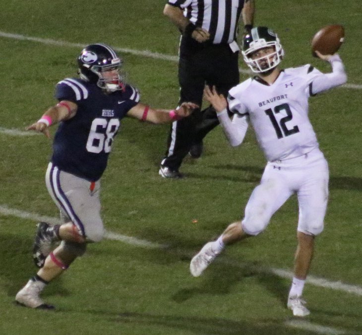 To bolster its ability to thwart their opponents’ rushing attack, the Rebels switched to an eight-man front and their improvement has been dramatic. They allowed only 195 rushing yards against Beaufort after surrendering more than 400 in their previous outing against Burke County.