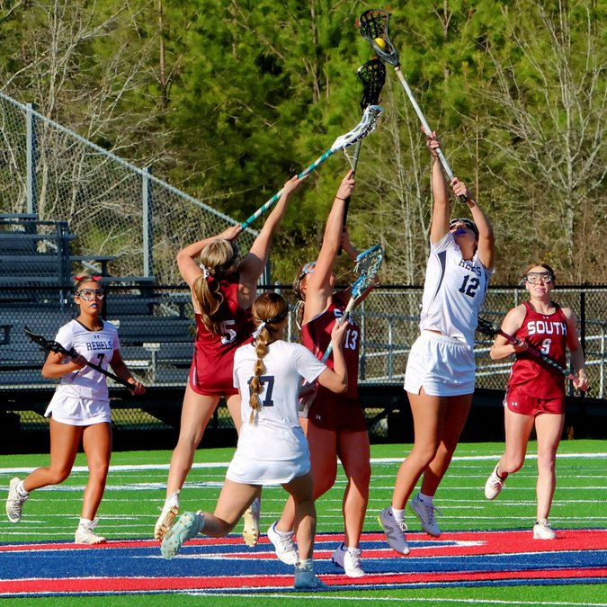 Midfielder Olivia Morgan tied her career-high with seven goals and her softball teammates Gracie LaFleur and Megan Coleman added seven and four goals respectively as the Rebels netted their season-high, single-game scoring effort.