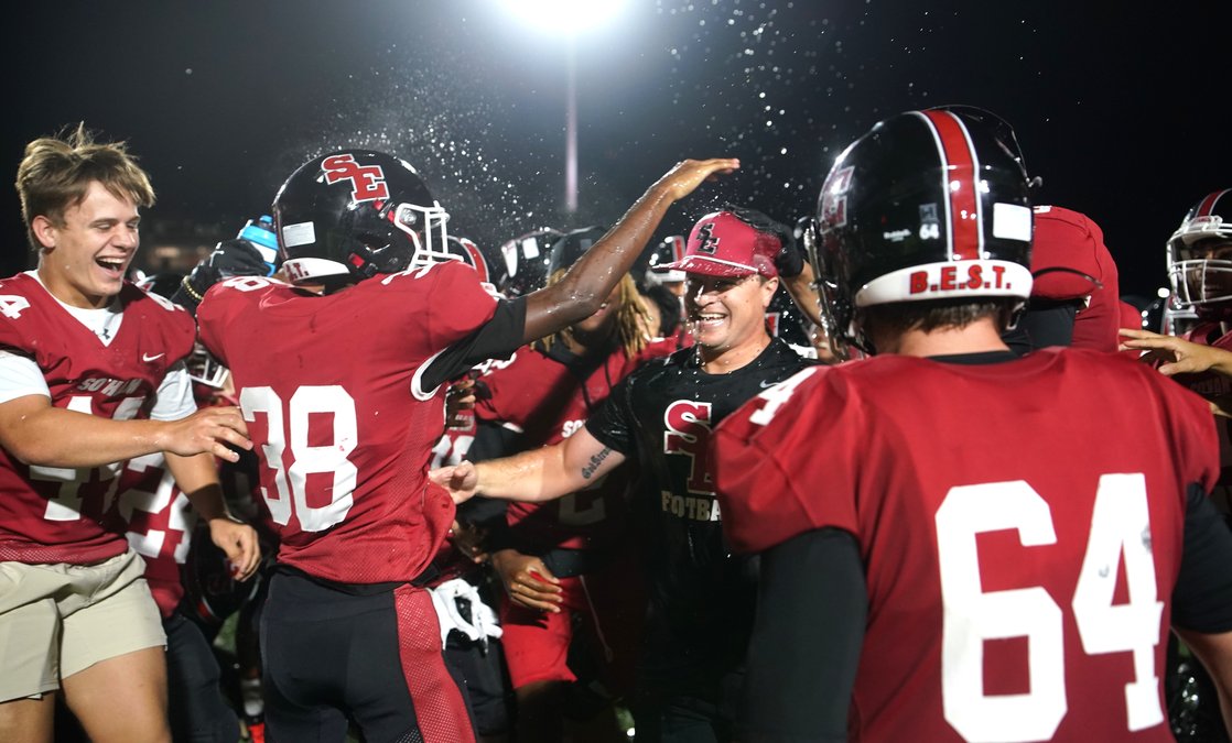 GUYTON, Ga. – South Effingham football players rushed Khyran White in celebration Friday night after a long-awaited victory. Coach Loren Purvis admitted he fought back tears during his post-game speech.